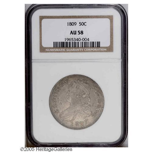 1809 50C AU58 NGC. O-109a, R.4. A heavy die crack betw 1809[50C] AU58 NGC.