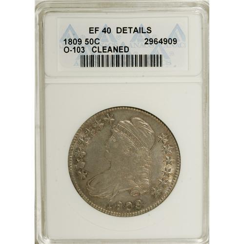 <B>1809 50C --Cleaned--ANACS. XF40 Details.</B></I> O-103. NGC Census: (29/292). PCGS Population (23/224). Mintage: 1,405,810. Numismedia Wsl. Price for NGC/PCGS coin in XF40: $175. (#6092)<BR><BR><b>Shipping:</b> Coins & Currency (<a target="_blank" href="http://www.heritageauctions.com/common/shipping.php">view shipping information</a>)