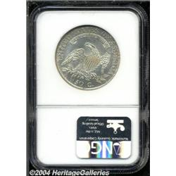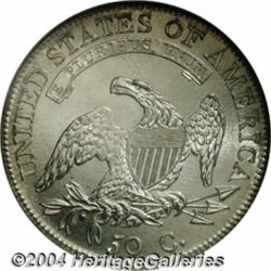 <B>1809<50C> MS64 NGC.</B></I> O-106, R.3. A die crack connects the left side stars, while the N in UNITED has a recut left foot. Both sides impart a bright, lustrous appearance with only the slightest hint of pale golden color near the borders. Sharply defined throughout, several chatter marks are seen across the eagles left wing that limit the grade. Population: 14 in 64, 9 finer (6/04). <BR><BR><B>Important notice:</B> Heritage usually auctions material at the rate of 200-250 lots per hour. On some occasions eBay Live bid software or the Internet may not be able to keep up with the pace of the auction. We recommend placing a realistic absentee bid now as insurance to avoid disappointment. Occasionally the auctioneer may eliminate or reject an eBay Live bid, and the auctioneer may also reopen a lot after the close of the eBay live bidding (usually because we missed an audience bid), and may reject your bid even if it shows you as the winning bidder. By bidding via eBay Live, you agree that Heritage may award the lot to another bidder at its sole discretion under the circumstances described above or any other reasonable circumstances. Since eBay bids are not shown to us until we open the lot on the floor, we treat those bids just like floor bids. In most cases the floor responds before the eBay bid is presented to us, due to Internet lag time, so for consistency we have made it a policy that floor bids are always considered first over tie eBay live bids. Also please note that all Heritage lots purchased through eBay Live carry a 20% Buyer's Premium. Please make sure you read the Terms and Conditions before you bid. </span></font></tr></table></td></tr></table>