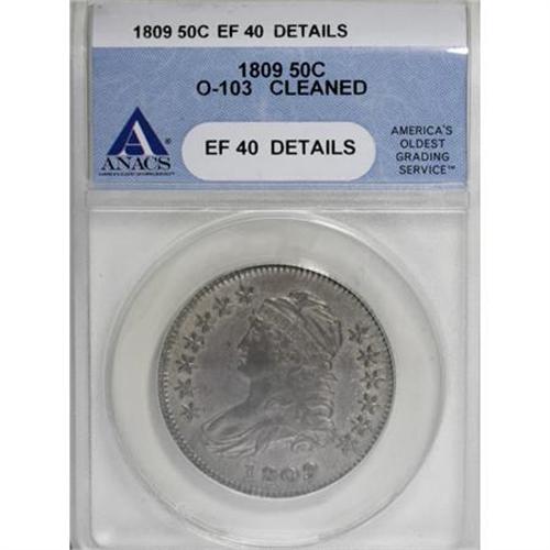 <B>1809 50C --Cleaned--ANACS. XF40 Details.</B></I> O-103. NGC Census: (29/294). PCGS Population (26/241). Mintage: 1,405,810. Numismedia Wsl. Price for NGC/PCGS coin in XF40: $250. (#6092)<BR><BR><B>Coin Engraver:</B> John Reich<BR><BR><b>Shipping:</b> Coins & Currency (<a target="_blank" href="http://www.heritageauctions.com/common/shipping.php">view shipping information</a>)