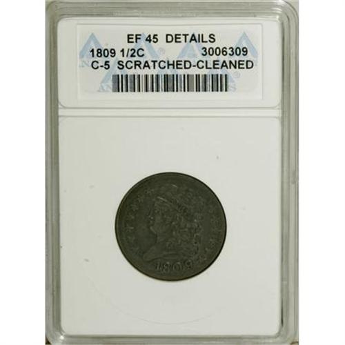 <B>1809/6 1/2 C --Cleaned, Scratched--ANACS. XF45 Details.</B></I> C-5. NGC Census: (12/97). PCGS Population (19/58). Mintage: 1,154,572. Numismedia Wsl. Price for NGC/PCGS coin in XF45: $256. (#1126)<BR><BR><B>Coin Engraver:</B> John Reich<BR><BR><b>Shipping:</b> Coins & Currency (<a target="_blank" href="http://www.heritageauctions.com/common/shipping.php">view shipping information</a>)