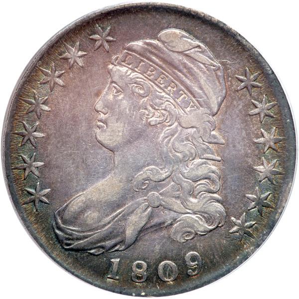 1809. Experimental edge, "IIIII" between words. . O-107. PCGS graded EF-45. Attractive antique toning about the devices and borders (PCGS # 6094) .