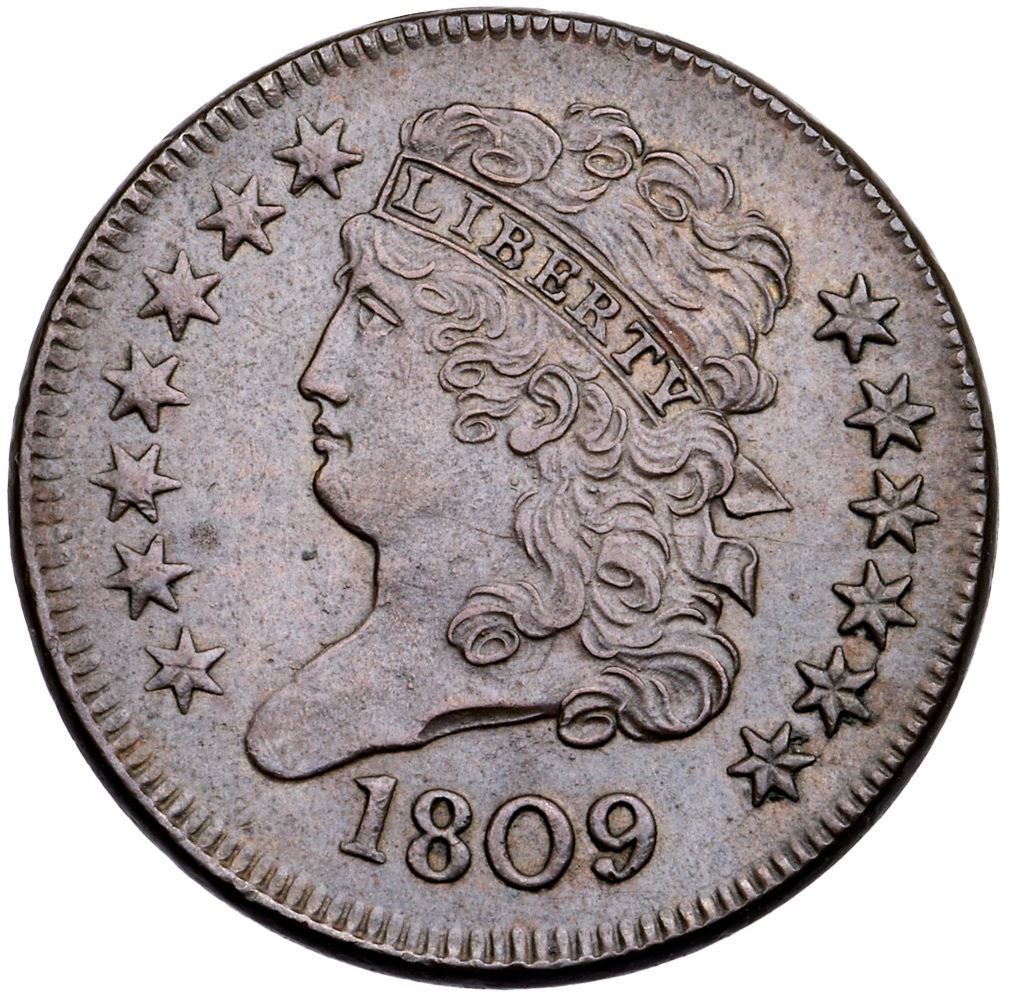1809 C-2 R-3 EF45AU sharpness but light corrosion around the reverse peripheries has been removed leaving some deep crimson color. Otherwise pleasing olive brown surfaces with hints of underlying golden tan mellowed down from faded mint color. Fee of notable marks. Manley state 2.0, there is a crack through stars 9 to 13 and into the field below star 13. This is the Manley Plate Coin for the variety. Broken out of an NCS UNC Details holder with the Jules Reiver provenance noted (label included 5083478-037).Certificate Number: Pedigree: Ex; Jim McGuigan 3/12/1985 - Jules Reiver Collection HA 1/24/2006:19091 - Bob Kebler Collection