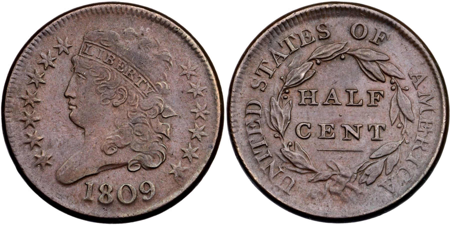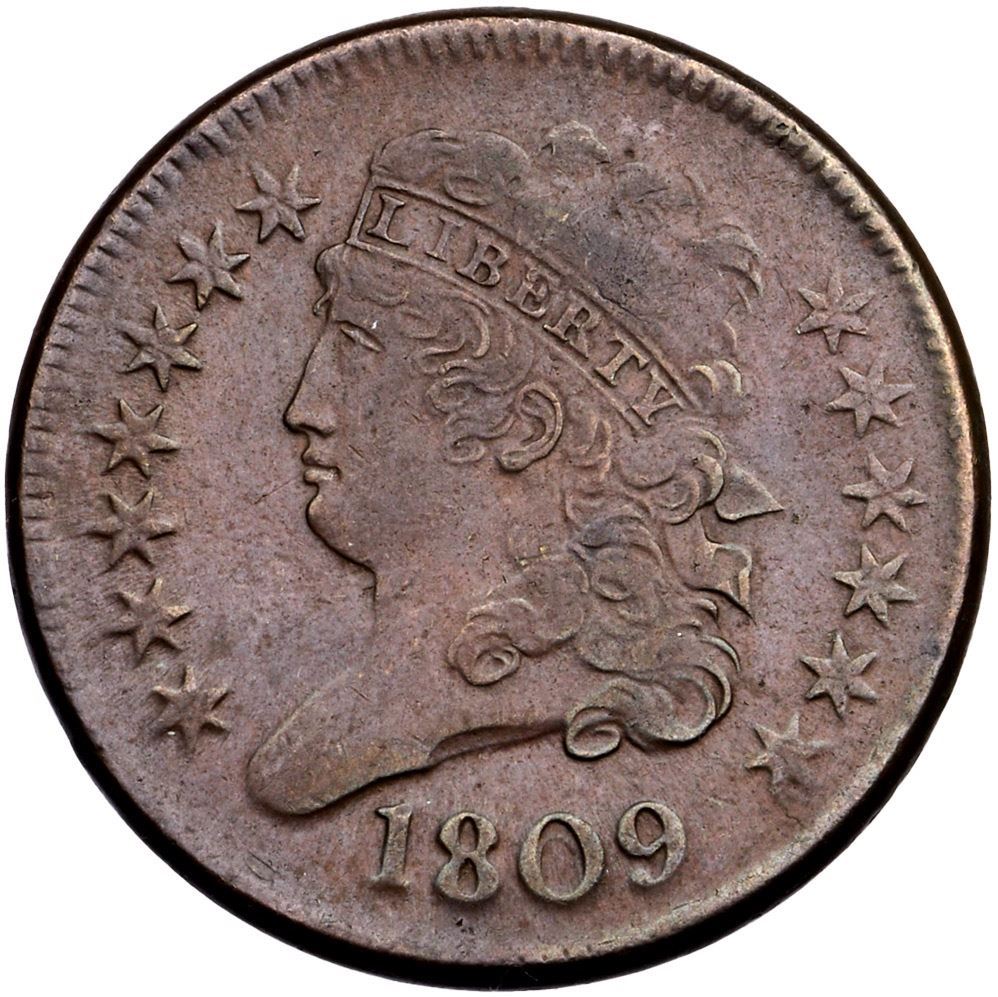 1809 C-4 R-2 VF30Pleasing chocolate and light steel brown. Only the most trivial of marks, nothing noteworthy or distracting. Smooth, glossy surfaces. M-LDS, Manley state 2.0. The reverse is rotated 15 degrees CW.Certificate Number: Pedigree: Ex; Doug Bird 2/14/2004 - Bob Kebler Collection