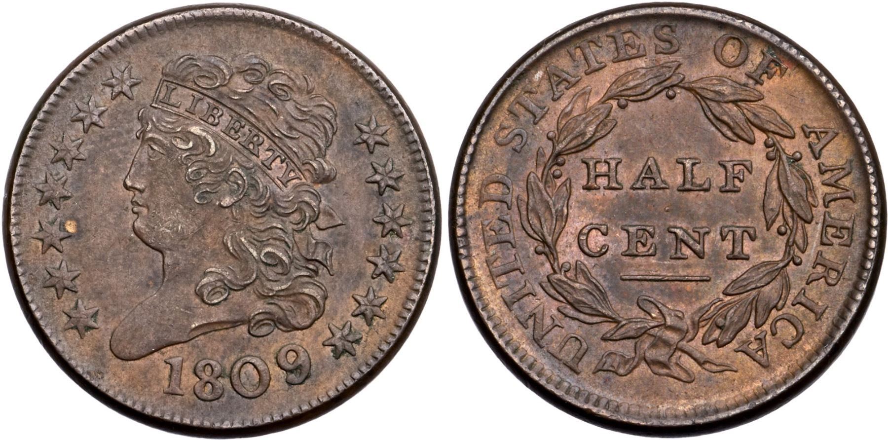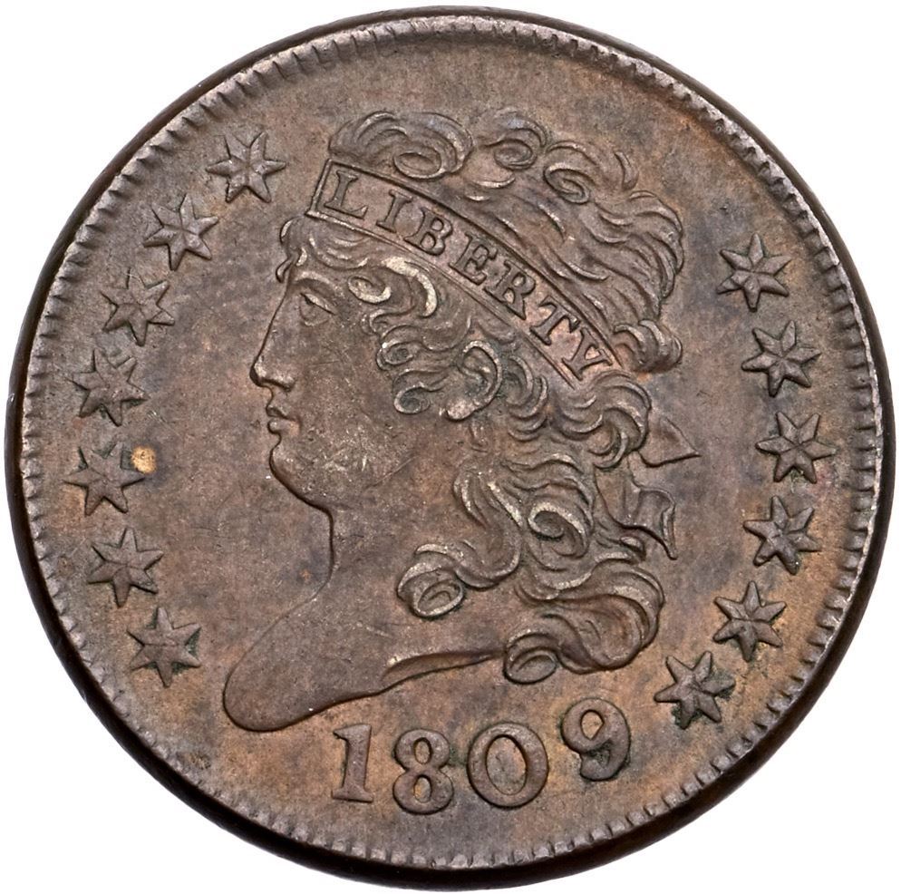 1809 C-5 R-1 AU50Attractive light steel and tan brown surfaces. Semi-glossy on the high points, with mint frost covering the protected areas, especially the reverse. Free of notable marks. E-MDS, Manley state 1.0.Certificate Number: Pedigree: Ex; Don Valenziano Jr. 4/8/2002 - Bob Kebler Collection