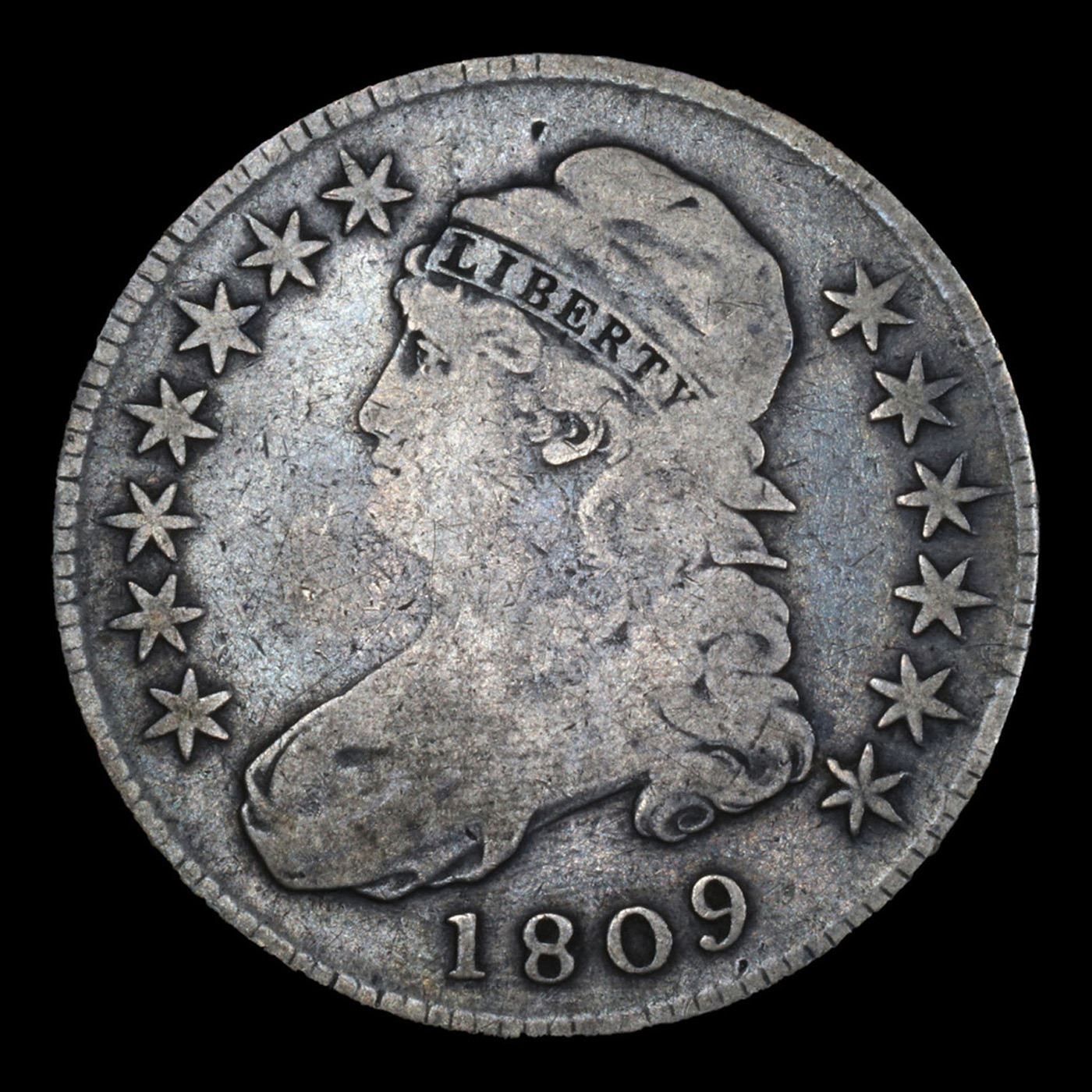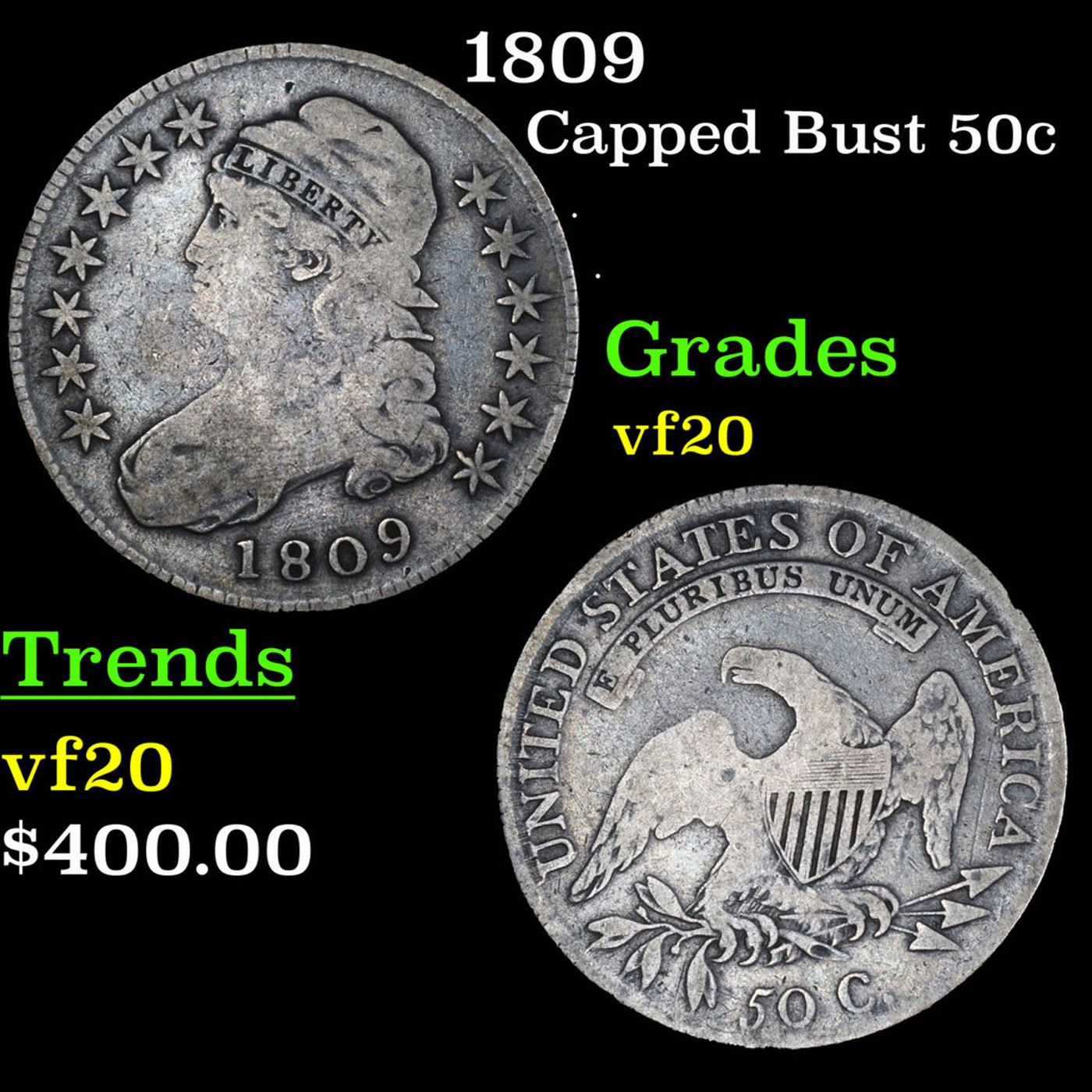 1809 Capped Bust Half Dollar 50c Grades vf, very fine.
