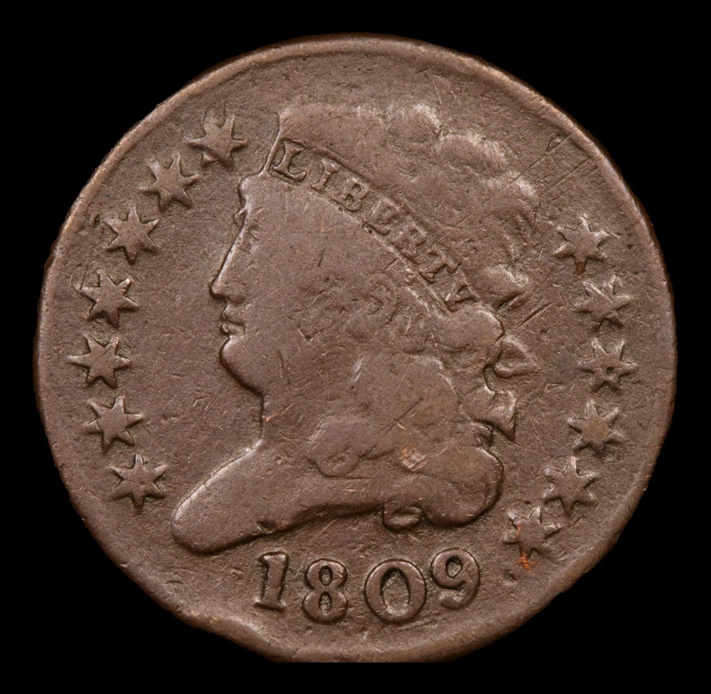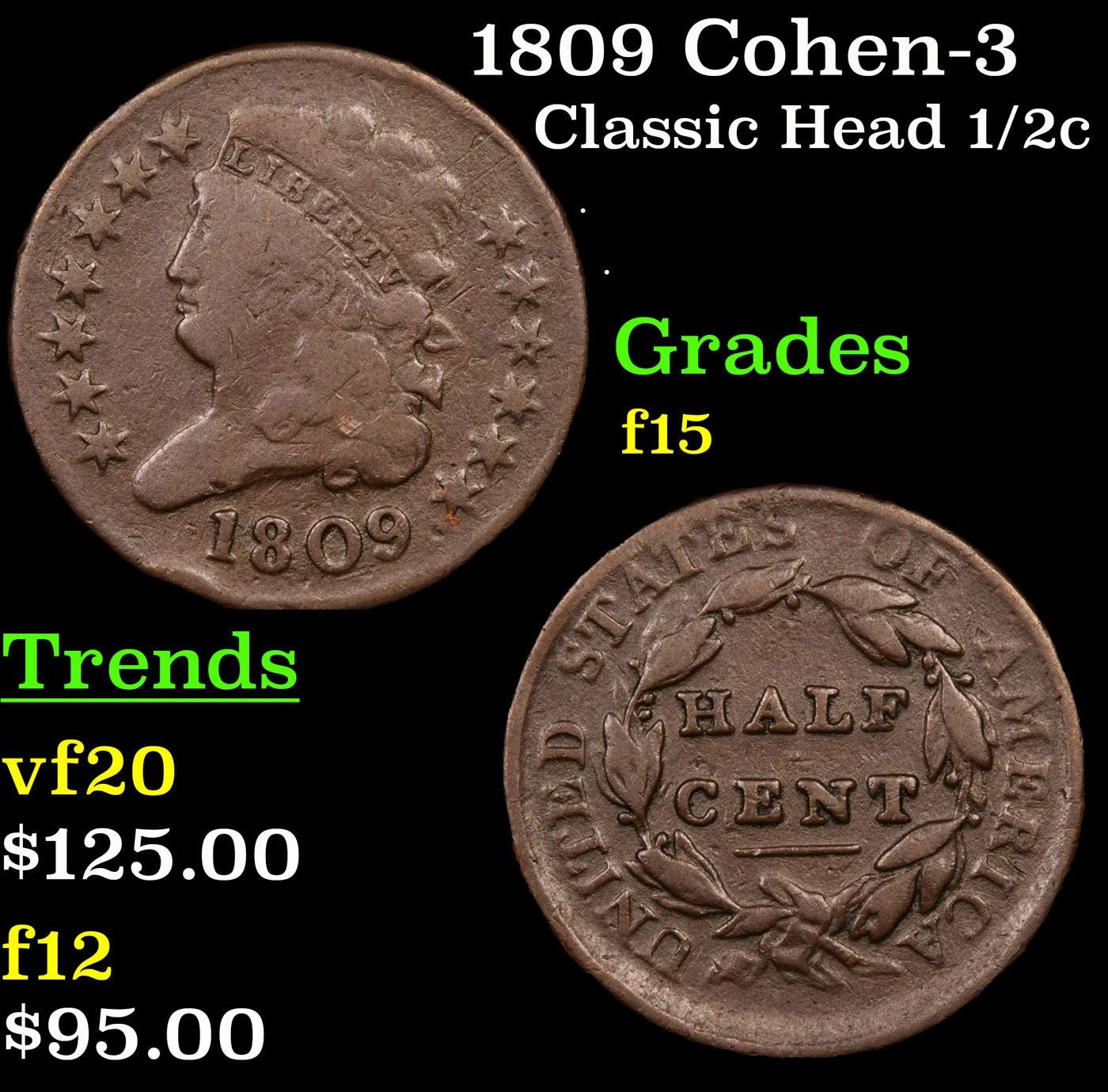 1809 Cohen-3 Classic Head half cent 1/2c Grades f+.