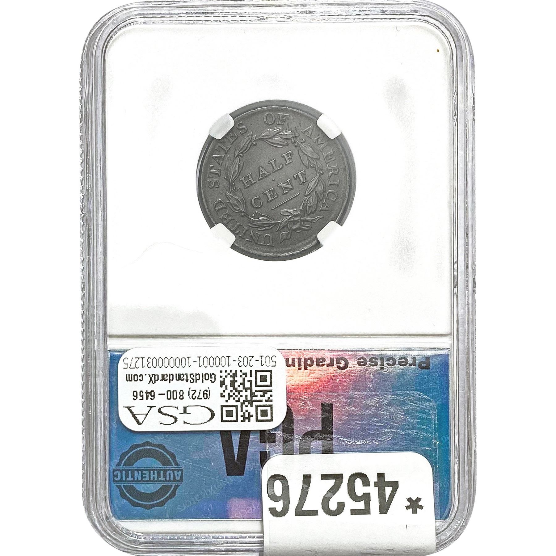 COINS AND CURRENCY LISTED IN GSA’S CATALOG AS GRADED AND ENCAPSULATED BY PCGS, NGC, ANACS, ICG, PCGS CURRENCY, PMG, PCGS BANKNOTE GRADING, CMC OR ANY OTHER THIRD-PARTY GRADING SERVICE ARE LIKEWISE SOLD “AS-IS” EXCEPT AS EXPRESSLY SET FORTH HEREIN. ALL THIRD-PARTY GRADING SERVICE GUARANTEES, INCLUDING AUTHENTICITY, ARE THE SOLE RESPONSIBILITY OF THE THIRD-PARTY GRADING SERVICE AND NOT WARRANTIES OR GUARANTEES OF GSA. BIDDERS SHOULD CONTACT THESE THIRD-PARTY GRADING SERVICES DIRECTLY WITH RESPECT TO ANY CLAIMS OR QUESTIONS THEY MAY HAVE CONCERNING THEIR GUARANTEES AND WARRANTIES. BIDDERS ACKNOWLEDGE AND AGREE THAT AUCTIONEER IS NOT BOUND BY OR LIABLE FOR ANY OPINION OR CERTIFICATION BY ANY THIRD-PARTY GRADING SERVICE. REMOVAL OF A PRODUCT FROM ITS PROTECTIVE CASING OR HOLDER OR ALTERATION OF ANY COIN HOLDER WAIVES ALL RIGHTS CONCERNING THE PRODUCT CONTAINED THEREIN.