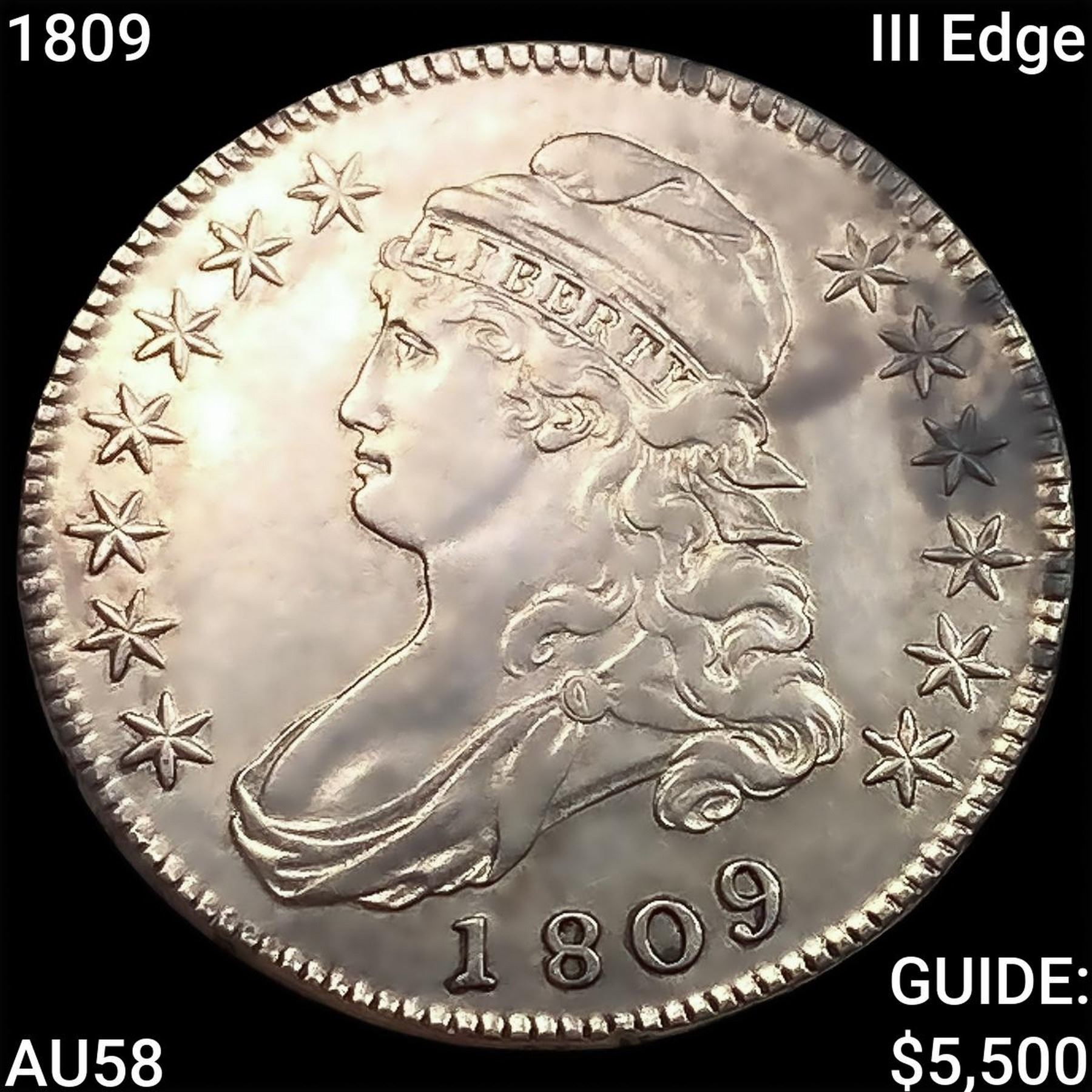 1809 III Edge Capped Bust Half Dollar CHOICE AU