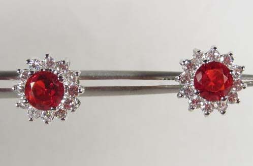 1809 - PAIR OF WHITE GOLD PLATED RUBY & TOPAZ EARRINGS