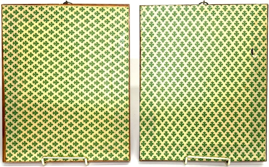 Condition: Signs of age and wear include discoloration, chipping, missing pieces, and surface markings to frame. One frame is broken from the bottom, with cracking and and peeling.