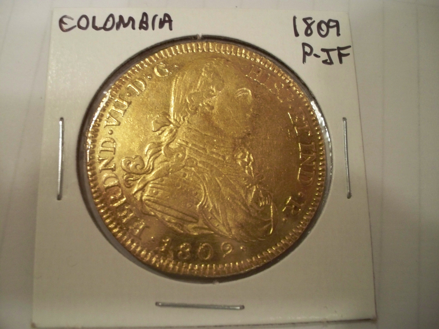 1809 Spanish 8 Escudo Colombia Gold Coin, MS