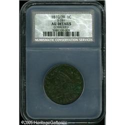 <B>1810/09 1C AU Details, Corroded, NCS.</B></I> S-281, R.1. A glossy and rough dark brown Cent. Boldly detailed, but intermittently pitted. The only overdated Sheldon variety for 1810 Cents. Lot:5132