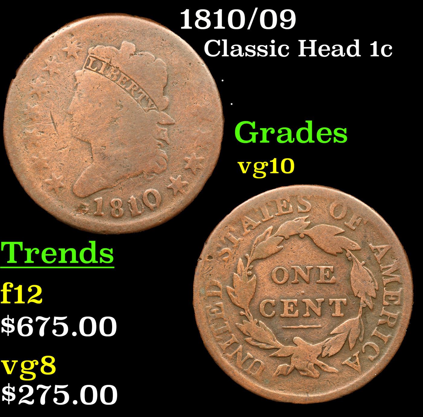 1810/09 Classic Head Large Cent 1c Grades vg+.