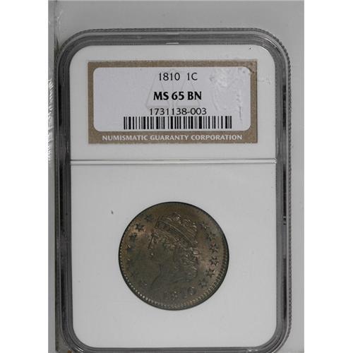 1810 1C MS65 Brown NGC. S-285, B-2, R.2. This importan