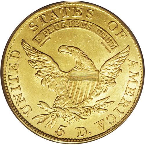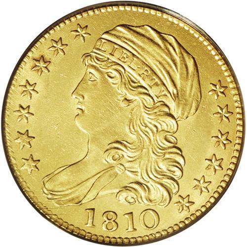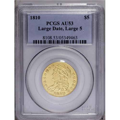 "1810 $5 Large Date, Large 5 AU53 PCGS. "