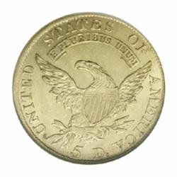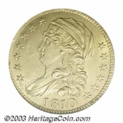 <table><tr><td><TABLE cellSpacing=0 cellPadding=0 width="100%" bgColor=#000000 border=0><TBODY> <TR><TD width="100%"><TABLE cellSpacing=1 cellPadding=3 width="100%" border=0><TBODY><TR><TD width="100%" bgColor=#79735c><FONT face=arial color=#ffffff size=3><B>Description</B> </FONT></TD></TR><TR><TD width="100%" bgColor=#ffffff><FONT face=arial size=2><B>1810 $5 Large Date, Large 5 MS62 NGC.</B></I> Breen-6459, B. 1-A, Miller-109, R.2. Although no dates stand out as great rarities within the series, John Reich's Capped Bust Left is among the scarcer gold types. The four die marriages of 1810 are readily distinguished, as the 1s in the date and the 5 in the denomination have different styles and one (and only one) variety exists for each possible combination. While the two Small 5 varieties are very rare, the Large Date, Large 5 is generally available for a price in Uncirculated grades. Bright mint luster swirls about the lightly abraded surfaces. Sharply struck except for the eagle's left (facing) claw. The dies are slightly rotated counterclockwise. </FONT></TD></TR></TBODY></TABLE></TD></TR></TBODY></TABLE><BR><A name=PricesRealized></A><TABLE cellSpacing=0 cellPadding=0 width="100%" bgColor=#000000 border=0><TBODY><TR><TD width="100%"><TABLE cellSpacing=1 cellPadding=3 width="100%" border=0><TBODY><TR><TD width="100%" bgColor=#79735c><A name=PR><FONT face=arial color=#ffffff size=3><B>Previous Prices from Heritage Auctions</B> </FONT></A></TD></TR><TR><TD bgColor=#f6f6ed><TABLE cellSpacing=0 cellPadding=0 width="100%" border=1><TBODY><TR><TD align=middle width="33%"><B>Date</B></TD><TD align=middle width="33%"><B>Service</B></TD><TD align=middle width="33%"><B>Price</B></TD></TR><TR bgColor=whitesmoke><TD width="33%"><B>05/31/2003</B></TD><TD width="33%">PCGS</TD><TD width="33%">$8,050.00</TD></TR><TR bgColor=whitesmoke><TD width="33%"><B>11/17/2000</B></TD><TD width="33%">PCGS</TD><TD width="33%">$5,750.00</TD></TR><TR bgColor=whitesmoke><TD width="33%"><B>08/17/1996</B></TD><TD width="33%">NGC</TD><TD width="33%">$6,160.00</TD></TR><TR bgColor=whitesmoke><TD width="33%"><B>10/02/2000</B></TD><TD width="33%">PCGS</TD><TD width="33%">$7,705.00</TD></TR><TR bgColor=whitesmoke><TD width="33%"><B>06/01/1997</B></TD><TD width="33%">PCGS</TD><TD width="33%">$9,350.00</TD></TR><TR bgColor=whitesmoke><TD width="33%"><B>10/01/1990</B></TD><TD width="33%">PCGS</TD><TD width="33%">$7,150.00</TD></TR><TR bgColor=whitesmoke><TD width="33%"><B>02/01/1999</B></TD><TD width="33%">NGC</TD><TD width="33%">$7,763.00</TD></TR></TBODY></TABLE></TD></TR><TR><TD bgColor=#ffffff><FONT face=arial size=1 ?>PLEASE NOTE: All prices realized reflect the final hammer price PLUS the buyer's premium in auctions that charge a buyer's premium. Each item has a notation at the top of the listing indicating whether that lot included a buyer's premium. Example: A item that sells with a final hammer price of $100 and a 20% buyer's premium will display with a price realized of $120. All information listed is intended to be as accurate as possible, but errors are possible. Please use this guide carefully and inform us of any inaccuracies. </FONT></TD></TR></TBODY></TABLE></TD></TR></TBODY></TABLE><BR><TABLE cellSpacing=0 cellPadding=0 width="100%" bgColor=#000000 border=0><TBODY><TR><TD width="100%"><TABLE cellSpacing=1 cellPadding=3 width="100%" border=0><TBODY><TR><TD width="100%" bgColor=#79735c colSpan=6><FONT face=arial color=#ffffff size=3><B>Price Guide*</B> </FONT></TD></TR><TR bgColor=#f6f6ed><TD align=middle><B>Grade</B> </TD><TD align=middle><B>Coin World<BR>(Trends)</B> </TD><TD align=middle><B>Numismedia<BR>Retail</B> </TD><TD align=middle><B>Numismedia<BR>Wholesale</B> </TD><TD align=middle><B>Coin<BR>Universe</B> </TD><TD align=middle><B>Heritage<BR>Value Index</B> </TD></TR><TR bgColor=#ffffff><TD align=middle>61</TD><TD align=right>---</TD><TD align=right>---</TD><TD align=right>$5,225.00</TD><TD align=right>$6,775.00</TD><TD align=right>$5,352.50</TD></TR><TR style="FONT-WEIGHT: bold" bgColor=#cccfdd><TD align=middle>62</TD><TD align=right>$10,000.00</TD><TD align=right>---</TD><TD align=right>$5,975.00</TD><TD align=right>$8,350.00</TD><TD align=right>$6,971.25</TD></TR><TR bgColor=#ffffff><TD align=middle>63</TD><TD align=right>$18,000.00</TD><TD align=right>---</TD><TD align=right>$8,150.00</TD><TD align=right>$13,000.00</TD><TD align=right>$9,568.75</TD></TR><TR bgColor=#ffffff><TD colSpan=6><FONT size=1>*All information listed is intended to be as accurate as possible, but errors are possible. No item may be returned or refused based on this information which is provided as a service to our customers. You should contact each pricing source directly to determine the accuracy of this information. </FONT></TD></TR></TBODY></TABLE></TD></TR></TBODY></TABLE><BR><TABLE cellSpacing=0 cellPadding=0 width="100%" bgColor=#000000 border=0><TBODY><TR><TD width="100%"><TABLE cellSpacing=1 cellPadding=3 width="100%" border=0><TBODY><TR><TD width="100%" bgColor=#79735c><FONT face=arial color=#ffffff size=3><B>Population Guide</B> </FONT></TD></TR><TR bgColor=#ffffff><TD align=middle><!-- Begin Output of Population Grid--><TABLE cellSpacing=0 cellPadding=0 width="100%" border=0><TBODY><TR><TD vAlign=center><TABLE cellSpacing=0 width="100%" border=1 cellsadding="3"><TBODY><TR><TD vAlign=center><TABLE cellSpacing=0 cellPadding=3 width="100%" border=1><TBODY><TR><TD vAlign=center align=middle bgColor=#f0f1e8 colSpan=2 <CENTER><FONT face=Arial size=2><B>PCGS Pop </B></FONT><CENTER></CENTER></TD><TD vAlign=center align=middle bgColor=#f0f1e8 colSpan=2><CENTER><FONT face=Arial size=2><B>NGC Pop</B></CENTER></FONT></TD></TR><TR><TD vAlign=center><FONT face=Arial size=2>(62)</FONT> </TD><TD vAlign=center align=right><FONT face=Arial size=2>28</FONT> </TD><TD vAlign=center><FONT face=Arial size=2>(62)</FONT> </TD><TD vAlign=center align=right><FONT face=Arial size=2>40</FONT> </TD></TR><TR><TD vAlign=center><FONT face=Arial si