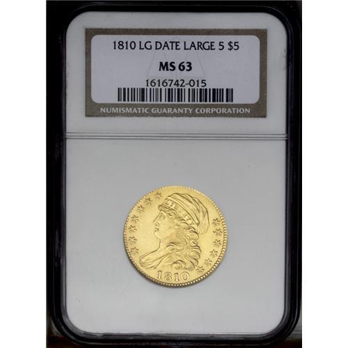 1810 $5 Large Date, Large 5 MS63 NGC. B. 1-A, Breen-64