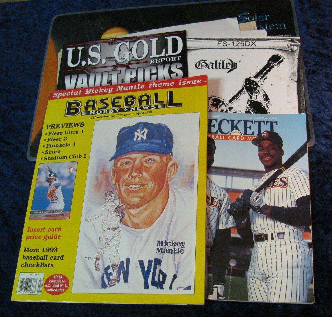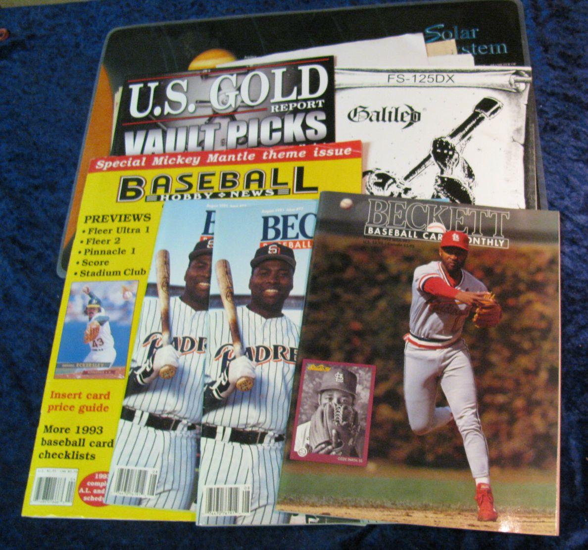1810. (5) U.S. Gold Report Posters; ISSAT Poster; Galileo FS-125DX Telescope Brochure; North American Whitetail Poster; 1993 Baseball Hobby News; 1998 Roger Maris Souvenir Edition The Des Moines Register; Big Mac Mc Gwire Poster; (2) 1991 & 1992 Beckett; & Solar System Place mat.