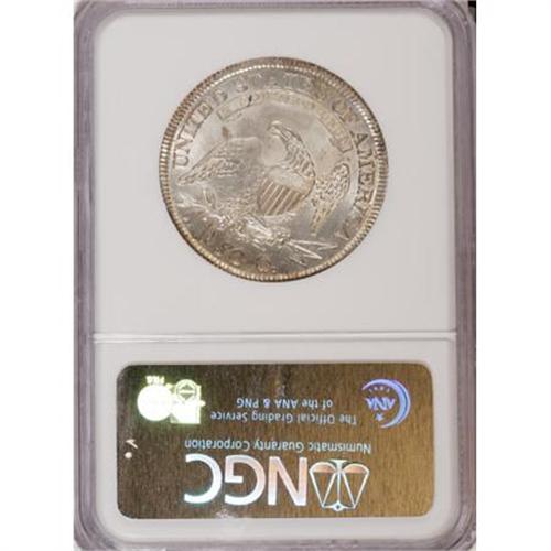 <B>1810 50C MS64 NGC.</B></I> O-102, R.1. An interesting, common variety from 1810 that shows an extra point on star 12 and the T in UNITED cut over a much lower T. Exceptionally well defined in all areas except the top of the eagle's left (facing) wing--an area that may be weak on all since the Overton plate coin also shows weakness in this area. Brilliant with dazzling mint luster. While it is always tricky trying to establish Condition Census ranking on Bust halves without a list of specific coins, we can at least say that this is one of the finest O-102s sold in recent years. An MS65 was in the Byers' auction and sold for $12,650 in October 2006.<BR><BR><B>Coin Engraver:</B> John Reich<BR><BR><b>Shipping:</b> Coins & Currency (<a target="_blank" href="http://www.heritageauctions.com/common/shipping.php">view shipping information</a>)