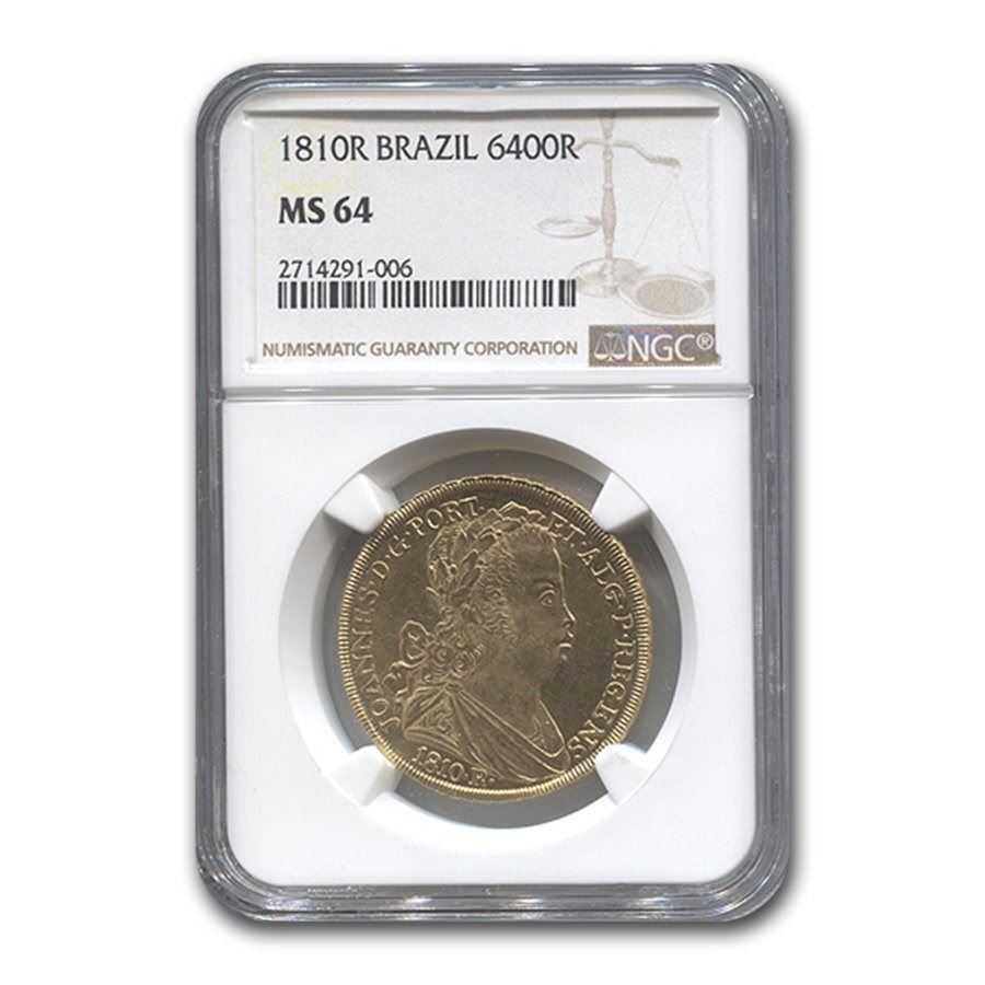 1810 Brazil Gold 6,400 Reis Prince Regent John MS-64 NGC
