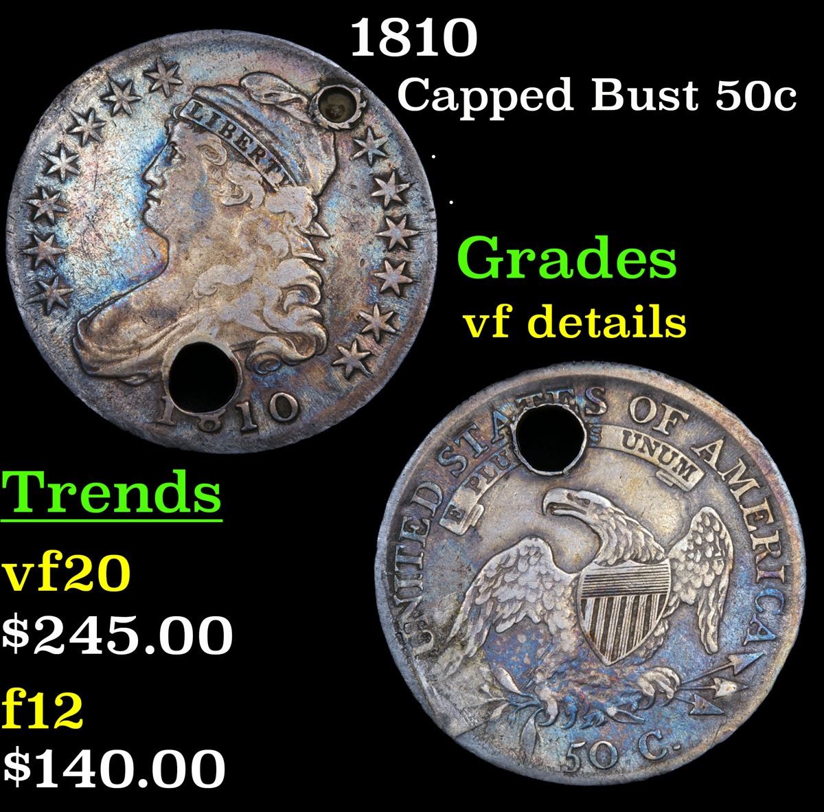 1810 Capped Bust Half Dollar 50c Grades vf details.