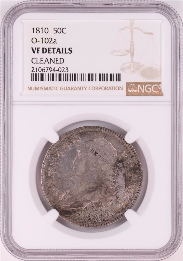 One 1810 Capped Bust Half Dollar Coin NGC VF Details O-102a. NGC Certified.