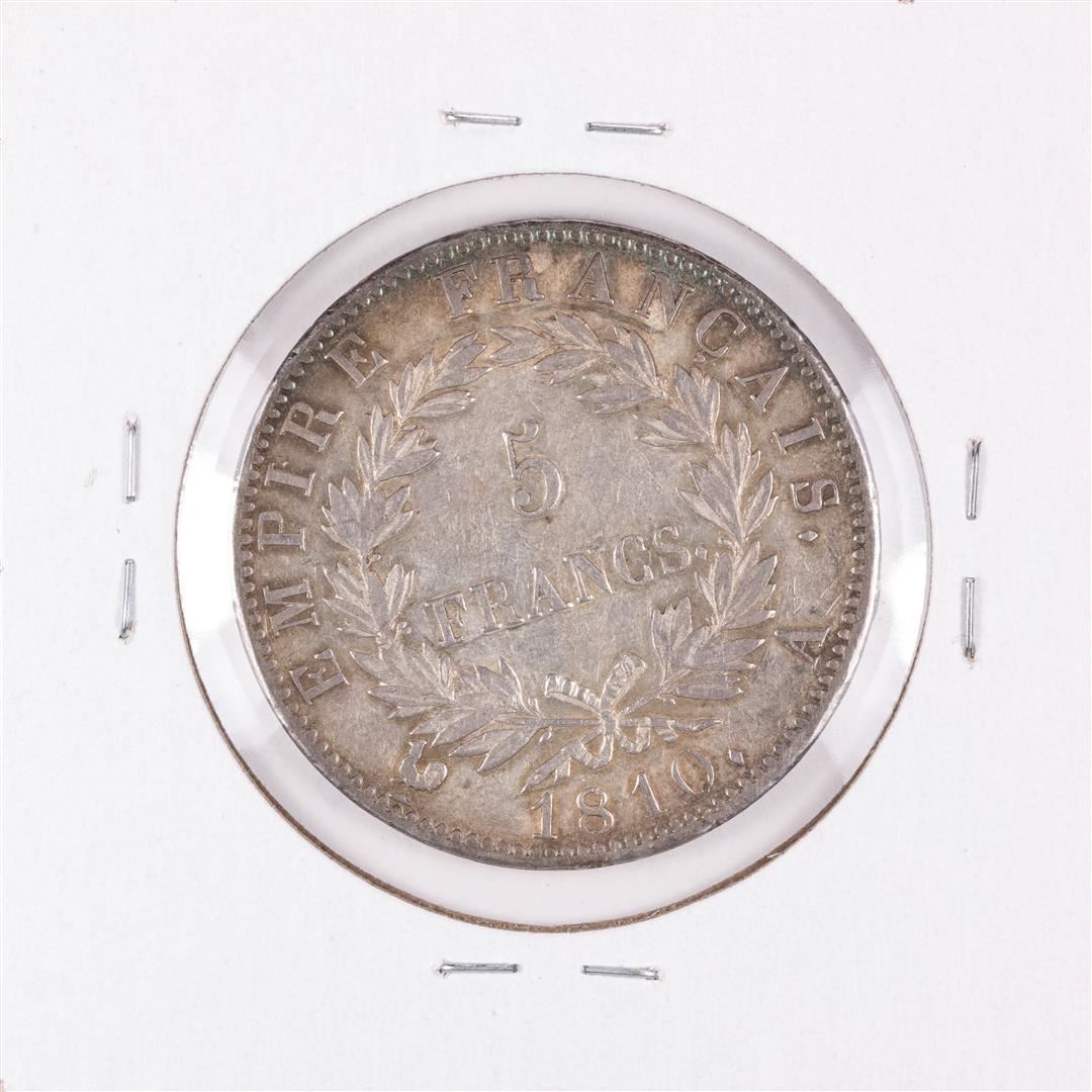 One 1810 France 5 Francs Napoleon Silver Coin.