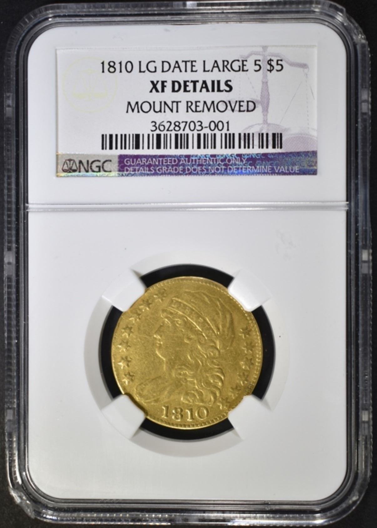 1810 LG DATE, LG 5 $5 GOLD NGC XF, MOUNT REMOVED