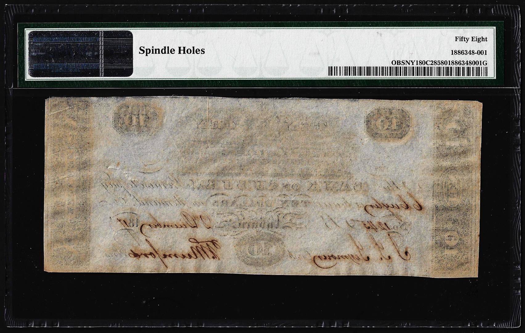 One 1810's $10 Bank of Auburn NY "Counterfeit" Obsolete Note PMG Ch. About Uncirculated 58. PMG Certified.
