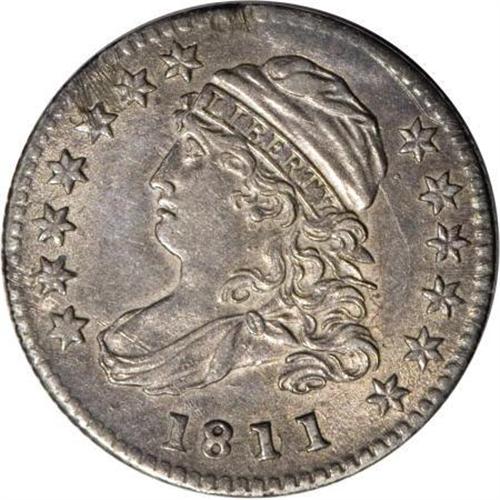 <B>1811/09 10C AU55 Scratched Uncertified.</B></I> JR-1, R.3. The second year of Capped Bust dime coinage is scarce in all grades. Considerable luster remains under artificial light gray and gold toning. Both sides have border scratches in places. Struck from a late state of the dies with a heavy obverse bulge and a shattered reverse die.<BR><BR><B>Coin Engraver:</B> John Reich<BR><BR><b>Shipping:</b> Coins & Currency (<a target="_blank" href="http://www.heritageauctions.com/common/shipping.php">view shipping information</a>)