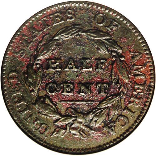 <B>1811<1/2 C>--Corroded--ANACS. AU Details, Net XF40.</B></I> B-2, C-2, Low R.3. Manley Die State 3.0. A very scarce date with only two known die marriages. Most survivors are well circulated. Bold clash marks (as made) behind Liberty's head and a die crack from the F in OF affirm the late die stage. A sharply detailed medium tan-brown example, although both sides exhibit moderate verdigris. A faint pinscratch above the date provides the only detrimental contact. EAC 12.