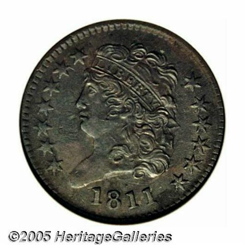 <B>1811<1/2 C>--Corroded--ANACS. AU Details, Net XF40.</B></I> B-2, C-2, Low R.3. Areas of granular surface are mostly relegated to the borders of this suitably struck mahogany-brown Half Cent. One of only two Cohen varieties for the date, excluding the rusted out of mint restrike. Cohen-2 is more available than its Cohen-1 counterpart, although both die pairings are scarce.