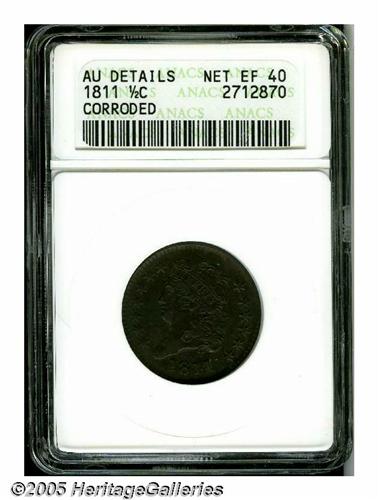 1811 1/2 C --Corroded--ANACS. AU Details, Net XF4