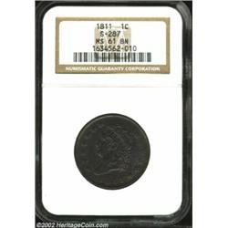 1811 1C MS61 Brown NGC. S-287, R.2. This coin should be of obvious importance to Mint State type col