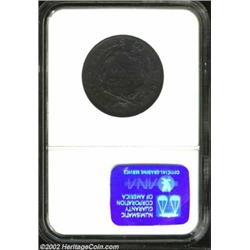 1811 1C MS61 Brown NGC. S-287, R.2. This coin should be of obvious importance to Mint State type collectors and high grade early Copper specialists alike. A well centered and obviously powerful strike has resulted in bold definition over all features save for the left obverse stars and the upper reverse border. Both sides are somewhat glossy in texture, but the outward appearance is one of rich dark brown toning. While we note a few flickers of crimson tinged patina here and there, we are unable to find any mentionable distractions save for a well concealed spot in the center of the obverse. Some shallow planchet voids (as struck) in the central reverse field are noted. Population: 2 in 61, there are only three finer with a Brown color designation (11/02). Important notice: We expect to be auctioning lots at the rate of 200-250 per hour. Sometimes eBay Premier live bid software cannot keep up with that pace, so we strongly recommend that you place a realistic proxy bid now as insurance to avoid disappointment. Also please note that all Heritage/CAA lots purchased through eBay Premier carry a 20% Buyer's Premium. Please make sure you read the Terms and Conditions.