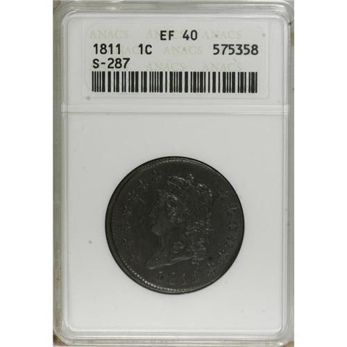 1811 1C XF40 ANACS. S-287, B-1, R.2. Deep steel-blue a