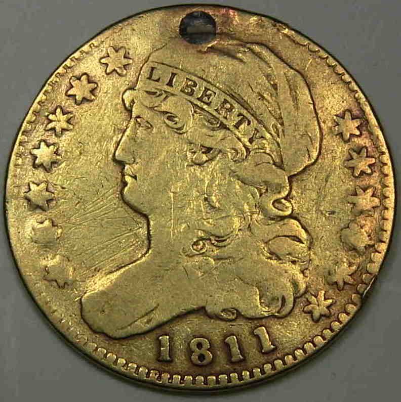 EST $1,500.00 - $1,800.00. Holed and filled, making this one of the more affordable examples of this rare early gold type coin