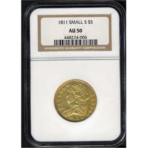1811 $5 SMALL 5 HALF EAGLE NGC AU50