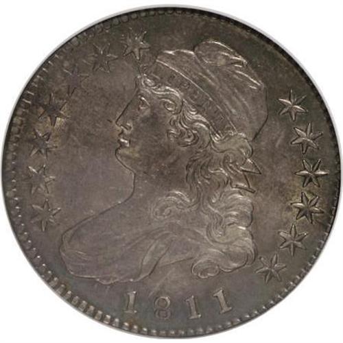 <B>1811 50C Small 8 AU53 NGC.</B></I> O-111. Mintage: 1,203,644. Numismedia Wsl. Price for NGC/PCGS coin in AU53: $475. (#6097)<BR><BR><B>Coin Engraver:</B> John Reich<BR><BR><b>Shipping:</b> Coins & Currency (<a target="_blank" href="http://www.heritageauctions.com/common/shipping.php">view shipping information</a>)