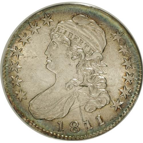 <B>1811 50C Large 8 AU55 ANACS.</B></I> O-103a. NGC Census: (53/271). PCGS Population (41/139). Mintage: 1,203,644. Numismedia Wsl. Price: $350. (#6096)<BR><BR><b>Shipping:</b> Coins & Currency (<a target="_blank" href="http://www.heritageauctions.com/common/shipping.php">view shipping information</a>)