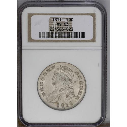 1811 50C Small 8 MS63 NGC. O-108, R.2. This lustrous,