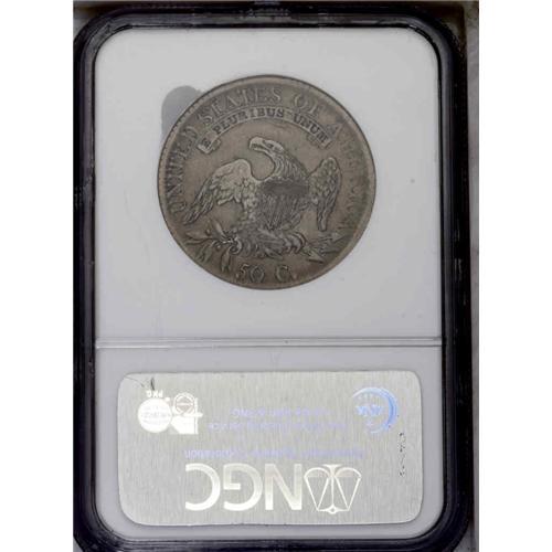 <B>1811<50C> Small 8 VF35 NGC.</B></I> O-113, R.5. Very similar to O-110, but showing heavy die erosion near the obverse and reverse peripheries. Violet-gray toning in the centers is supplemented by golden iridescence at the borders. Even wear is evident on both sides, in accordance with the assigned grade. A scarce variety.<BR><I>Ex: Don Frederick (1/30/1980).</B></I> Envelope Included.