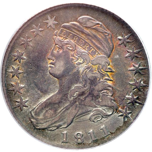 1811. Small 8. . O-111, break crosses 50 C and arrow points. PCGS graded EF-40. Attractively toned (PCGS # 6097) .