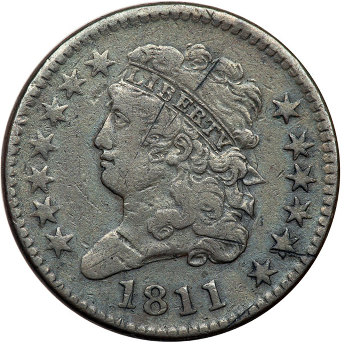 1811 C-2 R3 VG10. A few points sharper but there are a half dozen short scratches on both sides. No roughness or verdigris. Slightly glossy light olive brown with a hint of bluish steel overtone. The date is bold and the legends are clear. MDS, Manley state 2.0.