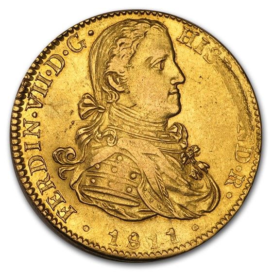 One piece 1811 Mo JJ Mexico Gold 8 Escudos Ferdinand VII XF Details