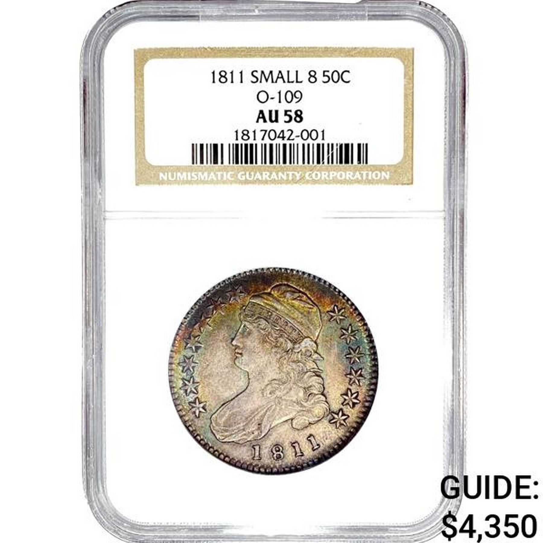 1811 Sm 8 O-109 Capped Bust Half Dollar NGC AU58