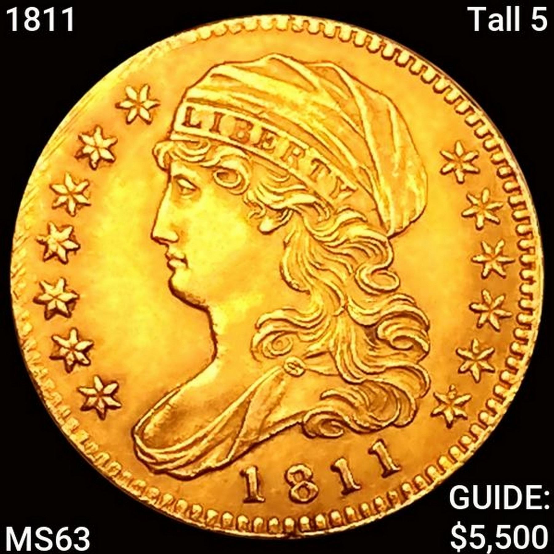 1811 Tall 5 $5 Gold Half Eagle CHOICE BU