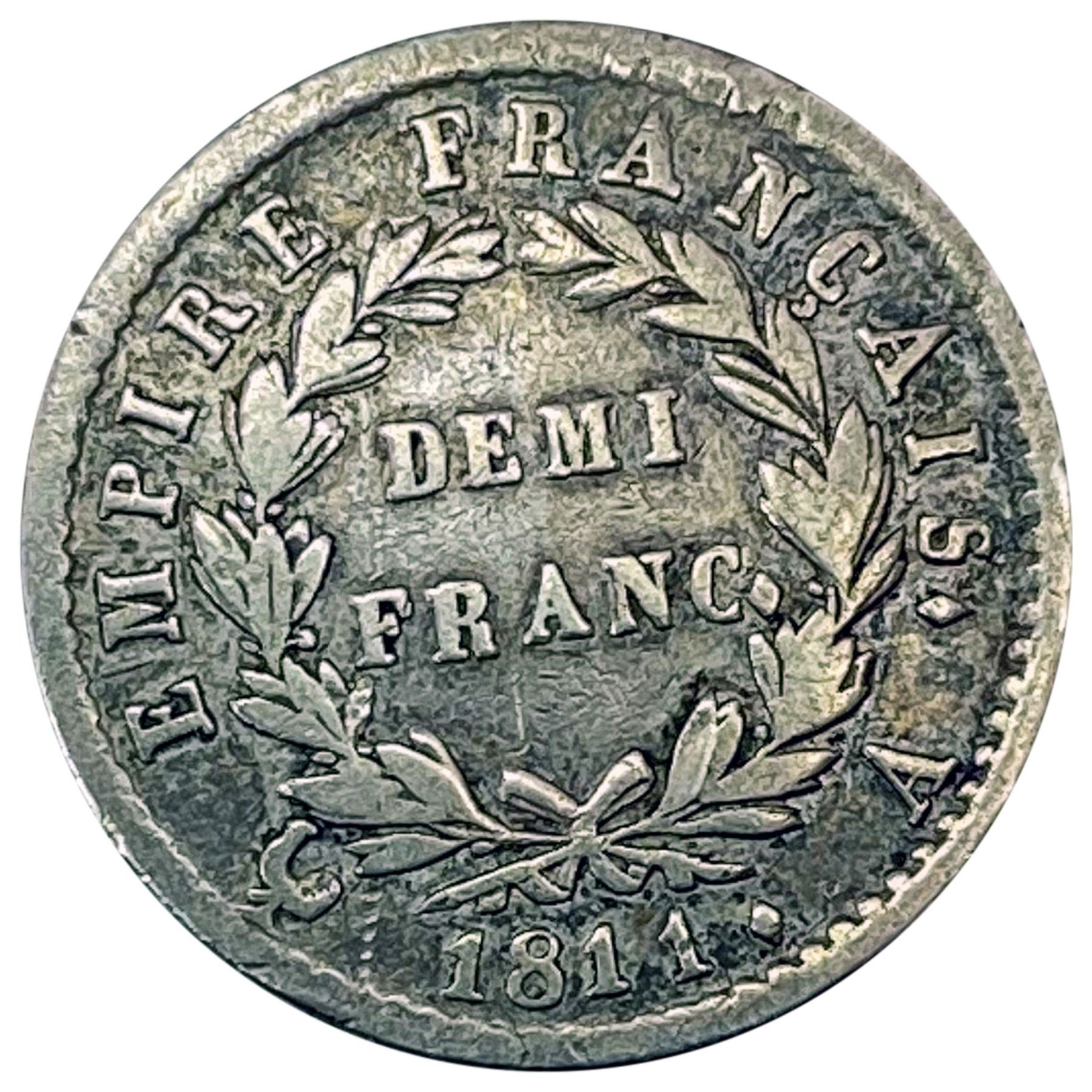 1811A France Silver 1/2 Franc Napoleon NEARLY UNCIRCULATED
