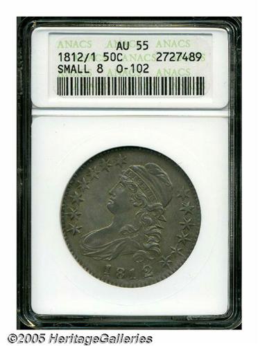 1812/1 50C Small 8 AU55 ANACS. O-102, R.2. Dove-g